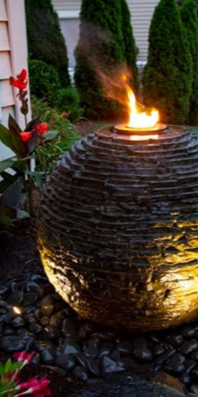 Your backyard paradise is not complete without the addition of fire. Aquascape Fire and Water features light up your landscape as a focal point in your water garden. Sit back, relax, and watch the flickering flames combine with flowing water to create a truly unique atmosphere.