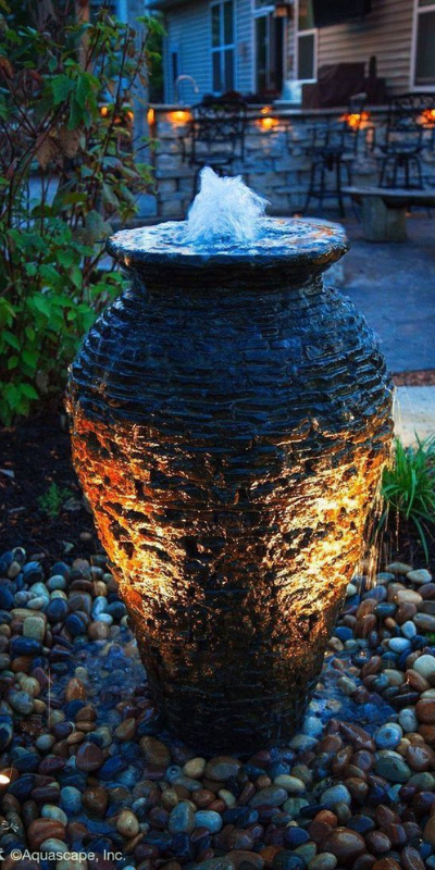 These larger landscape garden fountains, walls and spheres are typically set atop an underground reservoir that keeps re-circulating the water. Once the urn fills with water, the water spills out and over into the underground basin, which pumps the water back up through the urn.